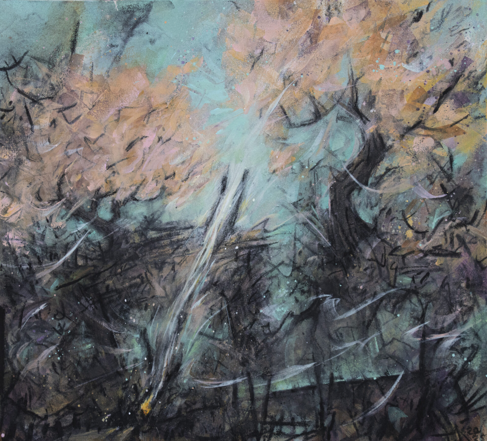 Maisemat muuttuvat usein intuitiivisten ja improvisaatioon perustuvien tekniikoiden kanssa työskennellessä. Jokainen teos on uusi uniikki seikkailu, josta matkamuistoksi ja todisteiksi jää maalia kankaalle. Pyrin harkittuun tasapainoon oman ja materiaalin luonnon välillä. Muodustuvat maisemat.
