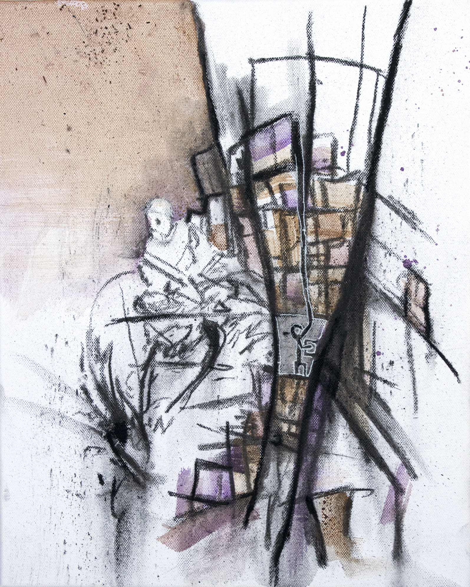 Unista ja alitajunnasta ammetavia hiilellä ja akryyreillä toteutettuja teoksia.
